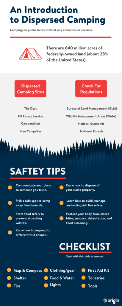 Dispersed camping (also called wild camping, boondocking, or dry camping) is not about luxurious amenities. It is about beautiful natural places and camping in an area that is not a designated campground.