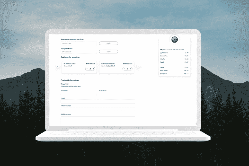 Origin’s platform collects customer details from one page to make the booking process quick and easy. Plus, you can add customized questions to get more information we don’t already collect. For example, if you need to know gear sizes, food allergies or preferences, or skill level. All this information is collected from the same page so your customers don’t have to click page after page to complete their booking.