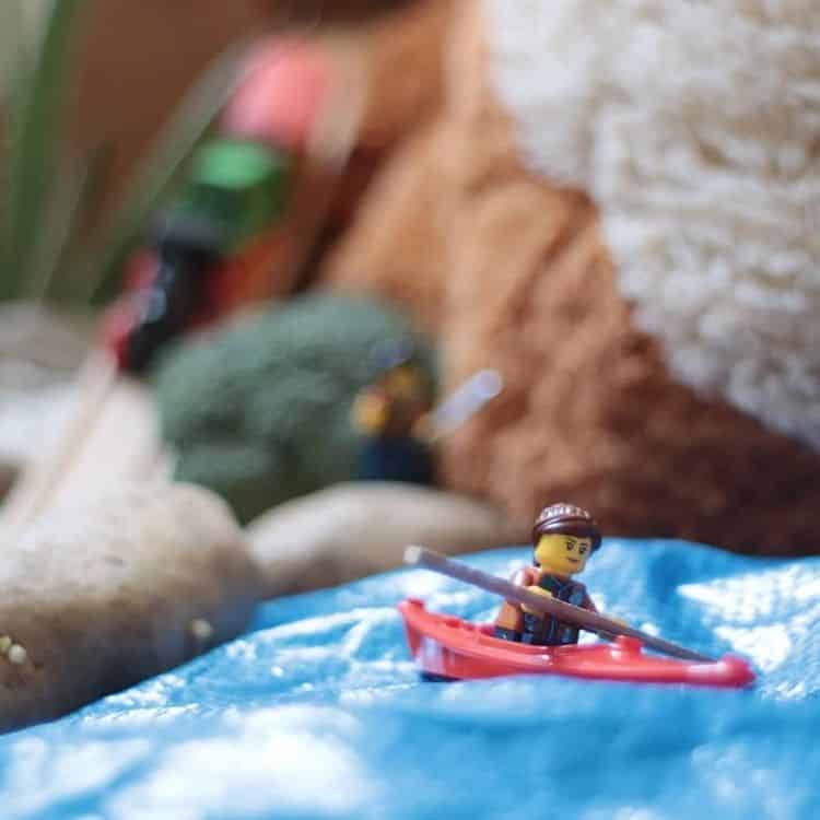 Linn (@darbinorvar)’s Lego Gal kayaks the blue rivers of plush bear. Swipe through her pictures to see the setup it took to capture this scene.